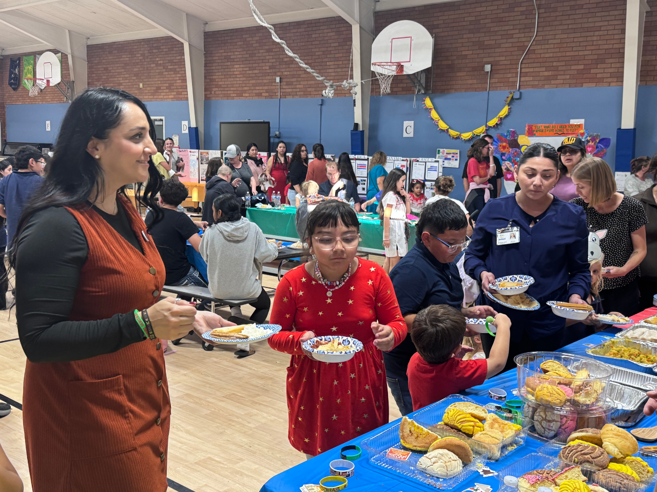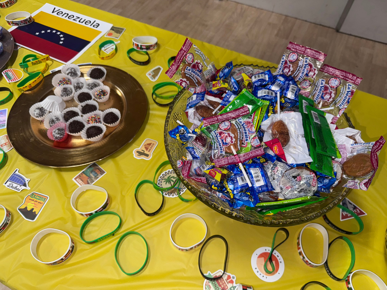 The evening was filled with the sounds of music and laughter as students opened the night with joyful songs and children twirled in traditional folklórico dresses. Tables overflowed with homemade favorites like tamales, Gelatina de Mosaico, Peruvian specialties, Venezuelan desserts, and many other dishes representing the rich flavors of Hispanic cultures.