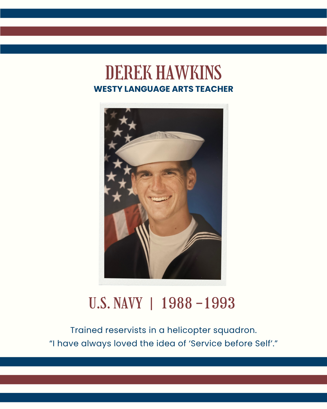 Derek Hawkins — U.S. Navy | 1988-1993 | Westminster High School Teacher