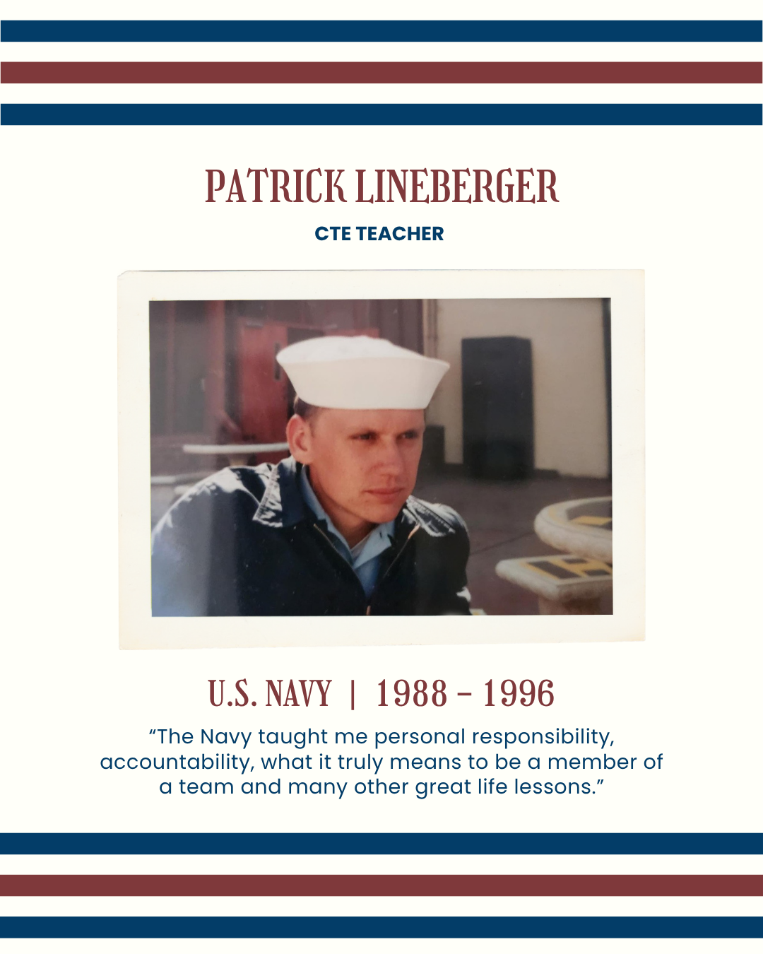 Patrick Lineberger — U.S. Navy | 1988-1996 | Westminster High School Teacher